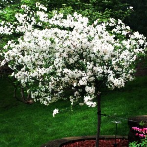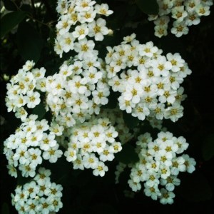 Bridalwreath Spirea, spiraea prunifolia, is a long-time favorite with its double, pure white flowers that bloom abundantly on arching branches in early spring. The clean, deep blue-green summer foliage develops an attractive yellow-orange to purple fall color. This spirea is rounded with ascending graceful arching branches that are leggy, and somewhat irregular.
