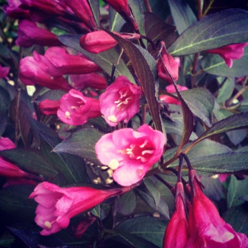 Weigela florida ‘Alexandra’ – Rosy-pink flowers add a touch of romance when displayed against the dark glossy foliage. The foliage is much darker than that of older varieties like Java Red. It contrasts beautifully with the rosy-pink flowers, making for a high impact display in the garden. The trumpet-like flowers are adored by hummingbirds!