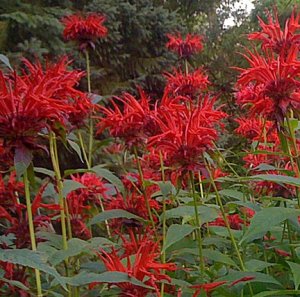 Oswego tea grows up to three feet tall, bear greenish rough leaves and dark pink, red, or purple flowers with large, shaggy heads. The Oswego Indians of western New York made tea from the dried aromatic leaves of Monarda didyma and shared their fondness for it with colonial settlers who went on to use it as a substitute when imported tea became scarce after the Boston Tea Party. The Shakers thought the tea effective in treating colds and sore throats, while other settlers steamed the plant and inhaled the fumes to clear sinuses. Oh, and hummingbirds are absolutely in love with mine!