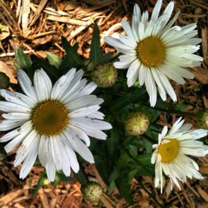 Shasta daisies bloom over a long period, from early summer until fall, forming tidy clumps from 2 to 3 feet tall and up to 2 feet across. The bright flowers contrast nicely with the glossy, dark green foliage, livening up any garden bed. The flowers are also suitable for cutting.