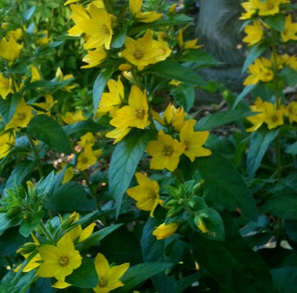 Lysimachia vulgaris (Garden Loosestrife, Yellow Loosestrife or Garden Yellow Loosestrife) is a species of herbaceous perennial plants in the genus Lysimachia native to wetlands, damp meadows and forests of Eurasia. It is a 50–150 cm tall plant with an upright habit, blooming from June through August with erect panicles of conspicuous yellow flowers.